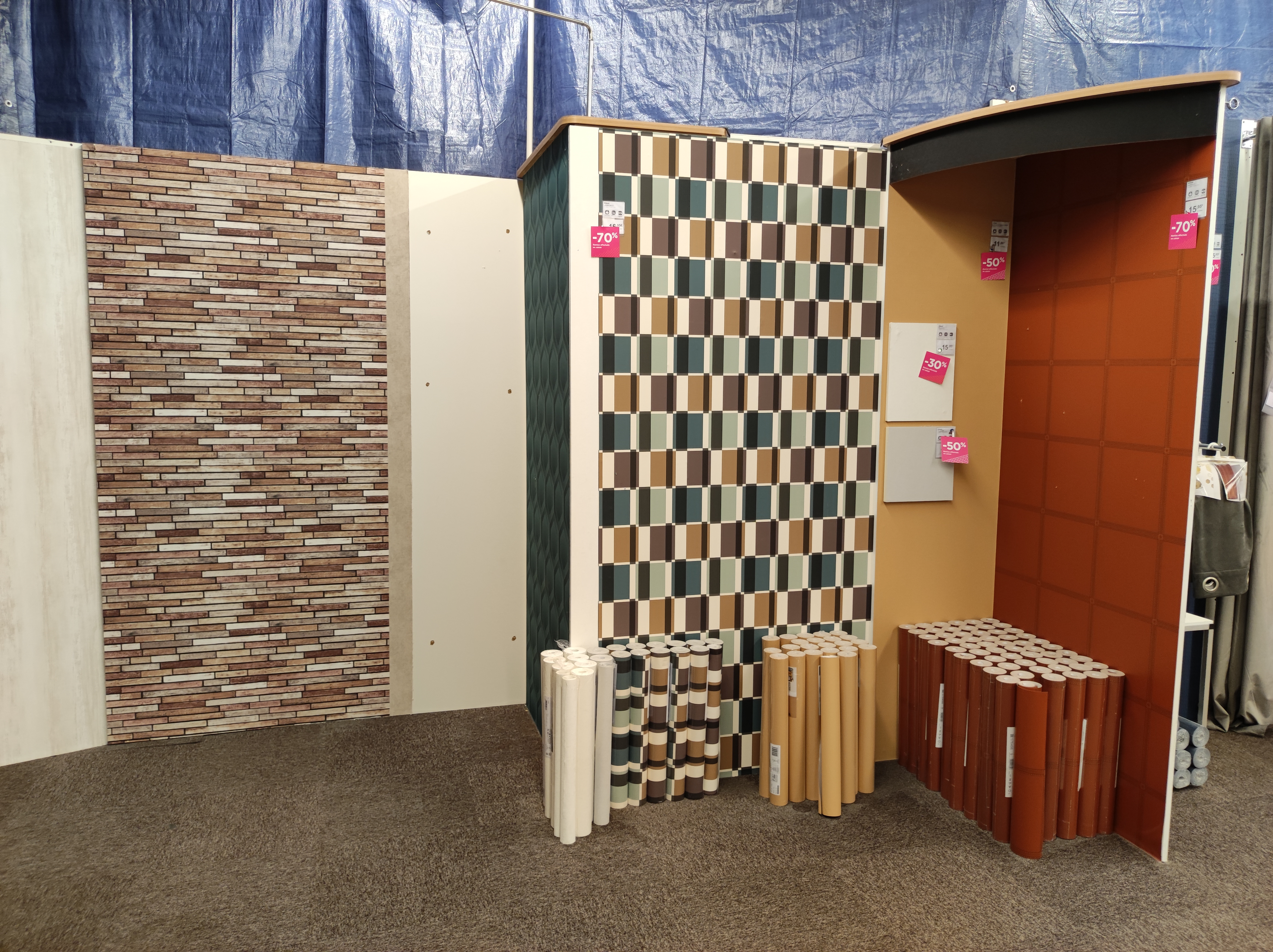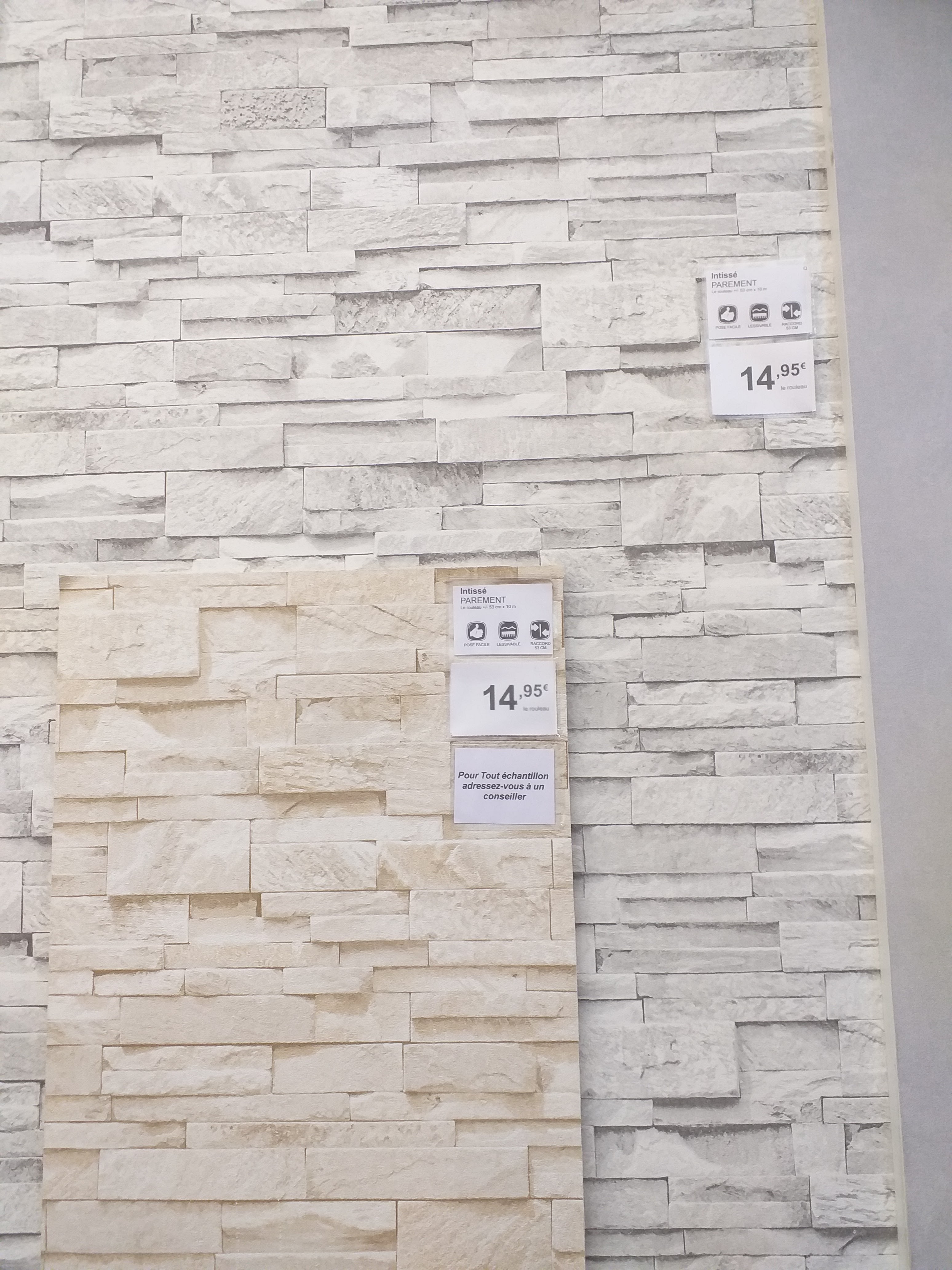 Plusieurs papiers peints de plusieurs qualités. Il y a une diversité de motifs et une variation de prix agréable. Très bon personnel. Par contre, sous effectifs.