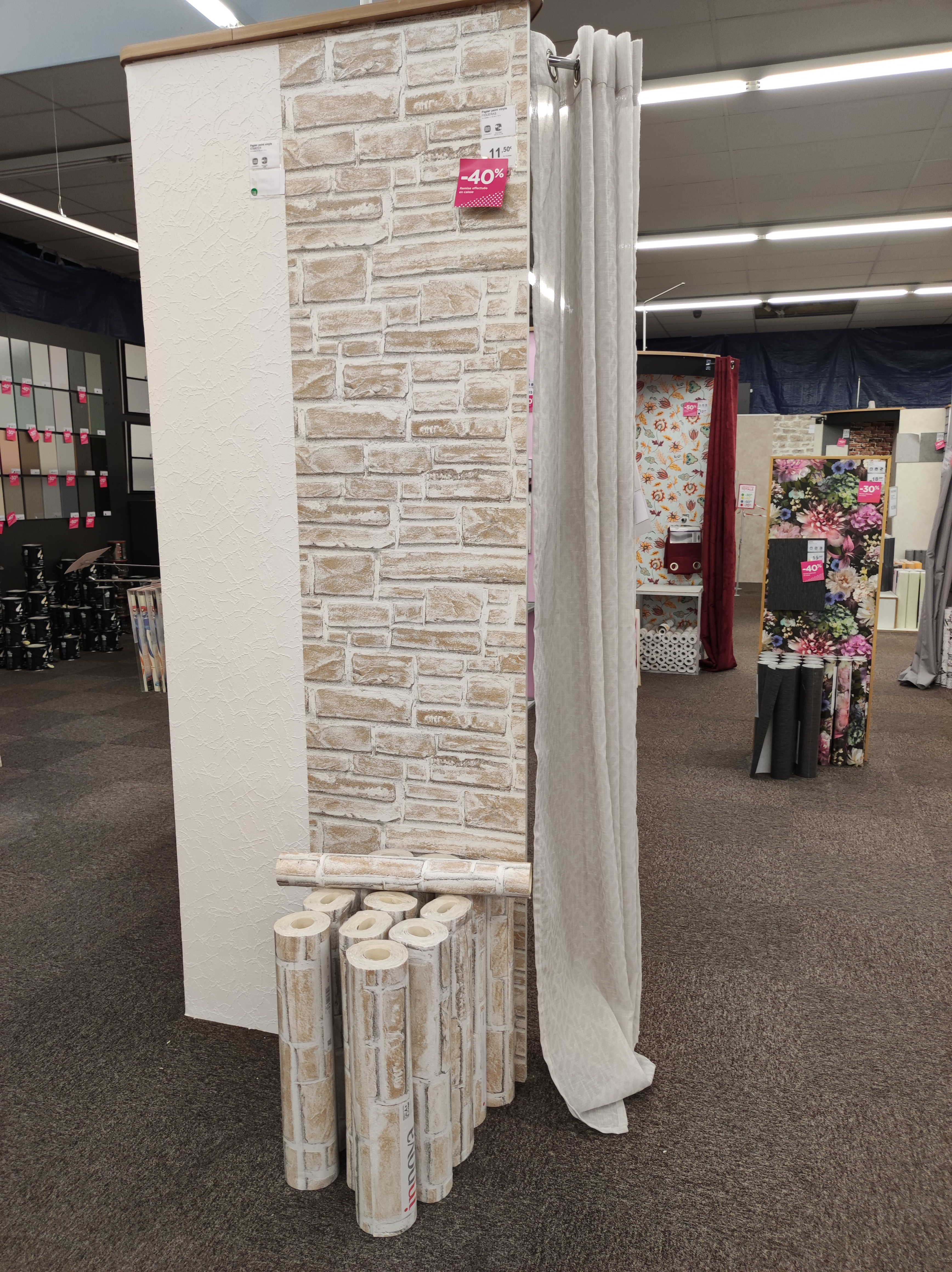 Je suis agréablement surprise par l agencement du magasin suite à sa réouverture après travaux . Du papier peint mis en situation avec des objets de décorations , des meubles, du textile permettant un visuel et une projection nettement plus facilitée. Un grand bravo pour ce nouveau positionnement decoration.