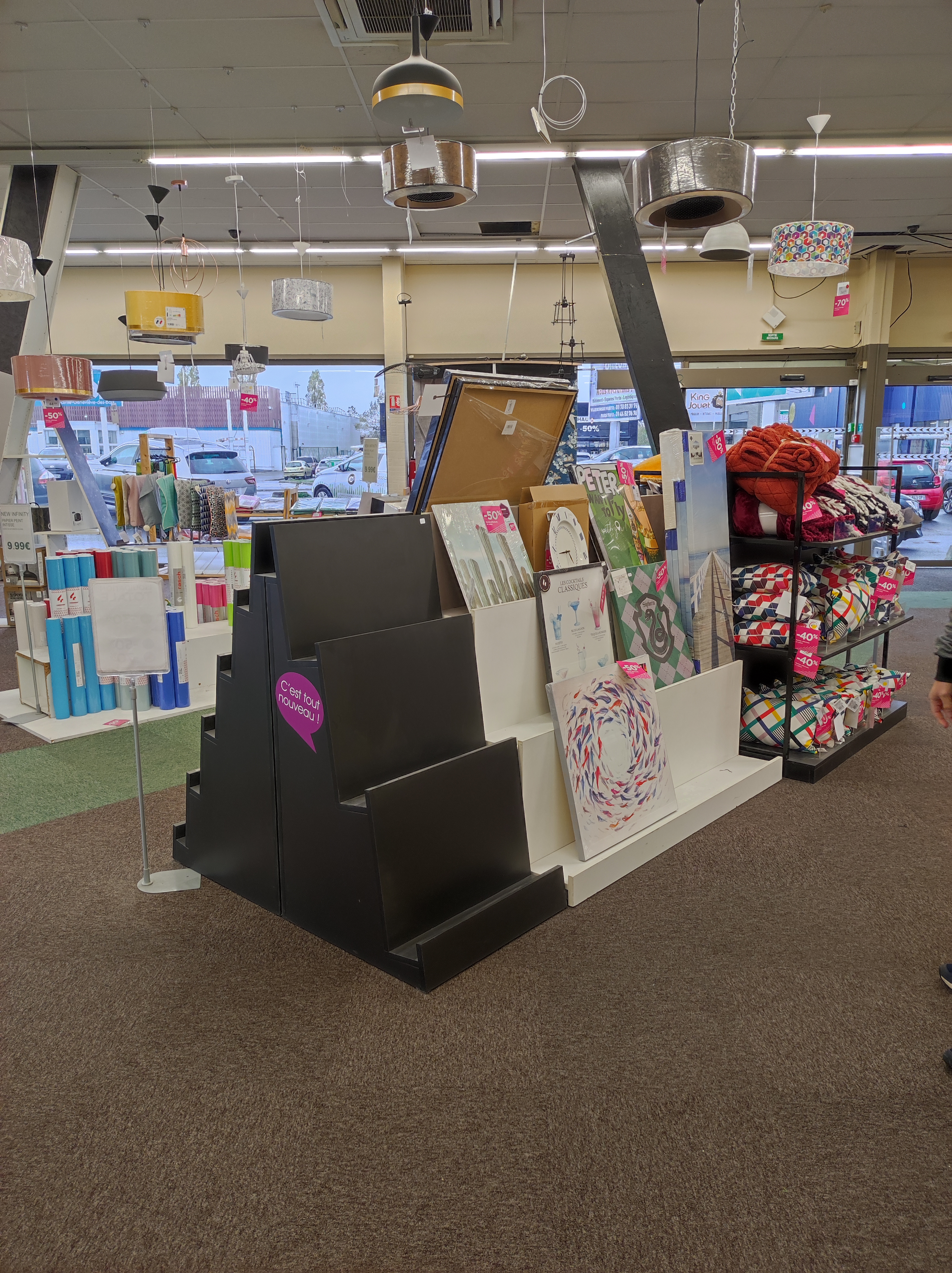 Je recommande se très beau magasin beaucoup de choix et très Jolie vs êtes obligé de trouvé votre bonheur dans se magasin .Il est très grand les papiers peints sont super bien expose .ont y trouve aussi de la belle vaisselles des beaux tapis .aussi de belles choses pour la chambre des enfants .est le jeune homme a la caisse super sympa 👍nous a trouvé se que l'ont recherché dans la réserve👍👍👍