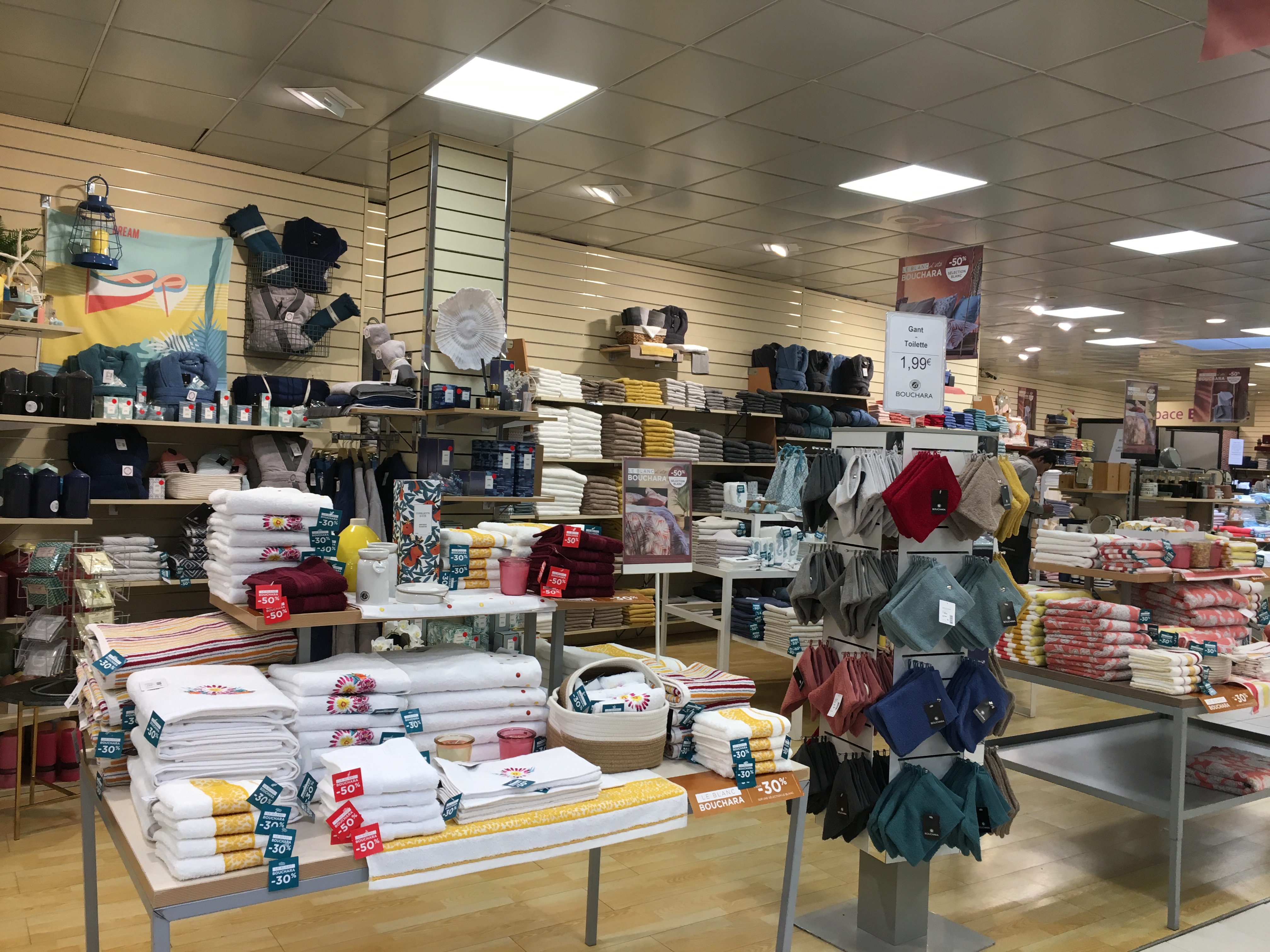 La présentation de ce magasin est soignée. Du très beau linge de toilette,serviettes éponge, draps de bain,peignoirs,parures de lit, plaids.