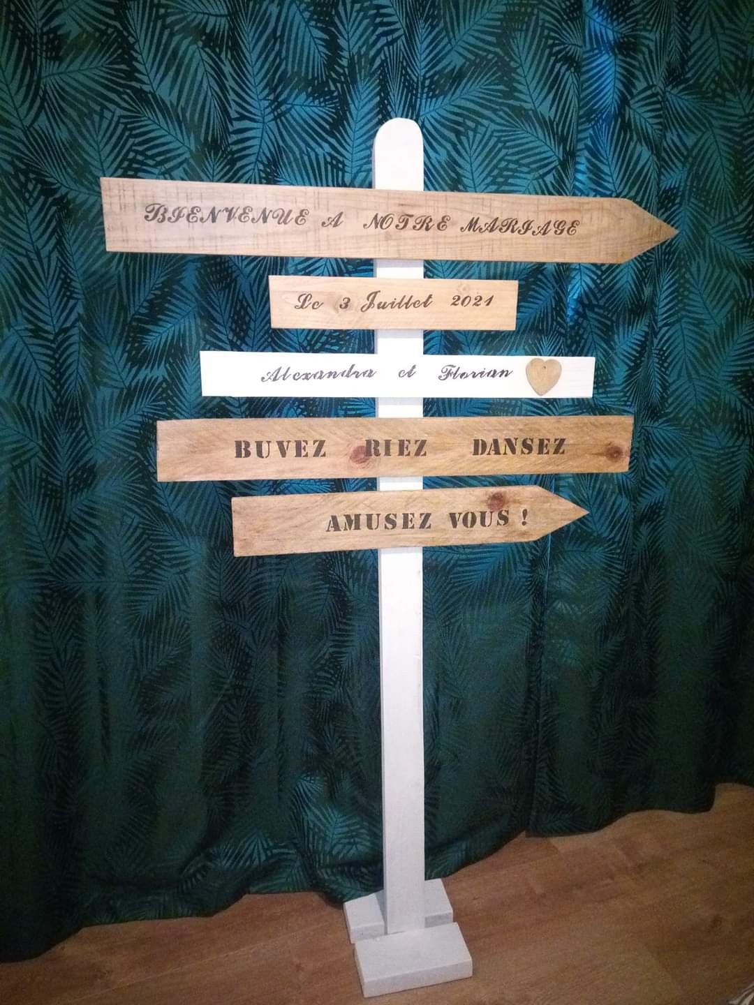 Mag est au top, à l'écoute et réactive. Elle m'a fait un super panneau de bienvenu pour mon mariage, un cadre, un panneau photobooth et un porte accessoires au top. Je vous la recommande à 200% 👍.