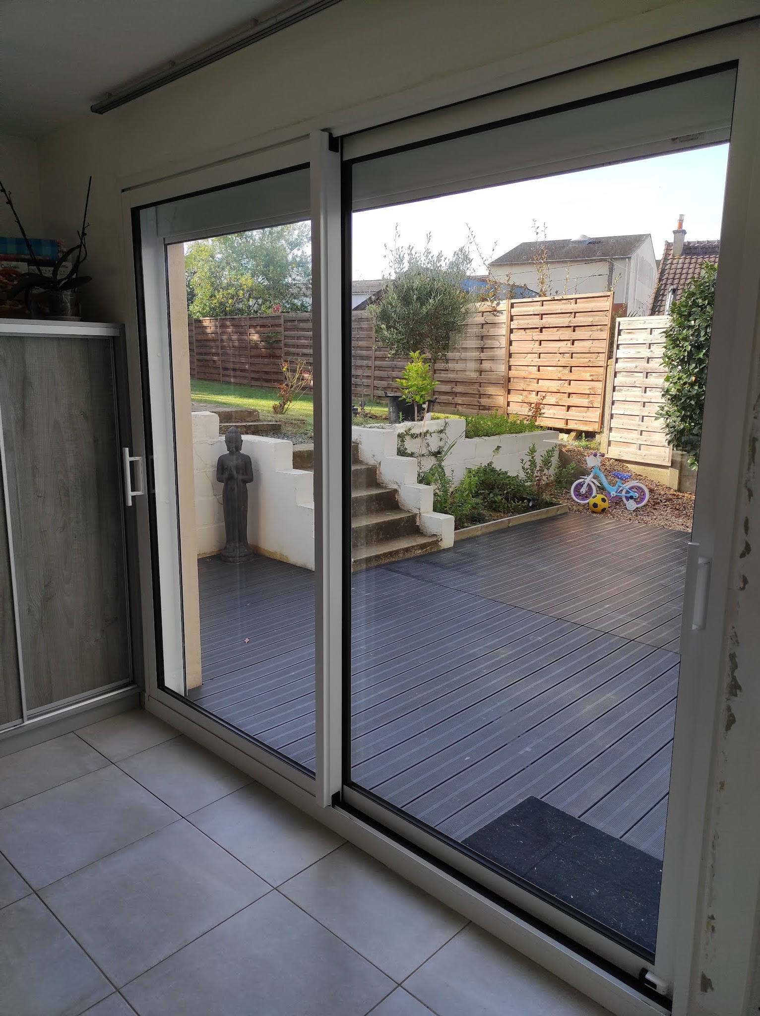 Réalisation d'une baie vitrée donnant sur une terrasse, le chantier s'est très bien passé malgré quelques petits contre-temps qui n'était pas lié à l'entreprise, une entreprise professionelle avec des ouvriers qualifiés. Je recommande fortement cette entreprise pour vos réalisations de menuiserie.